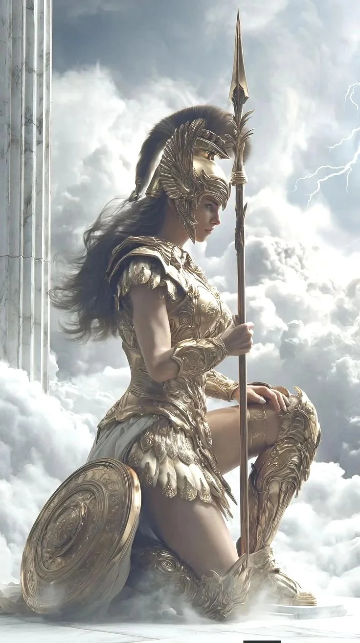 Den grekiska mytens Athena är vishetens och krigsstrategins gudinna. Hon föddes ur huvudet på sin far, gudarnas konung Zeus, efter att ha slukat hennes mor, Metis. Zeus hade nämligen fått höra en profetia som sade att Metis en dag skulle föda ett barn som skulle störta honom från tronen.